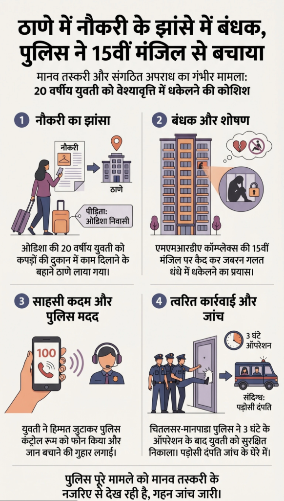 नौकरी के बहाने युवती को बनाया बंधक; ठाणे में 15वीं मंजिल से पुलिस ने छुड़ाया, गंदे काम में लगाने की थी साजिश